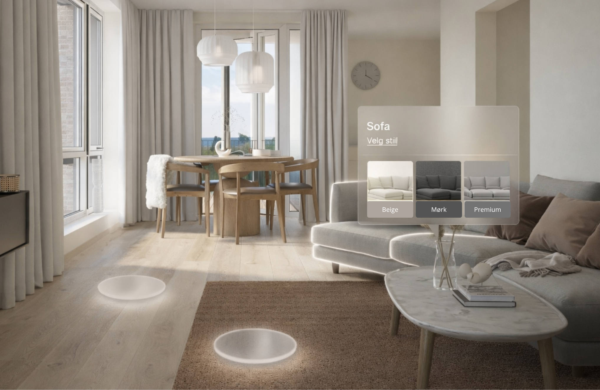 Med digital 360 graders visning navigerer kjøperne rom for rom og velger materialer i sanntid. En realistisk kjøpsopplevelse lenge før bygget er ferdig.