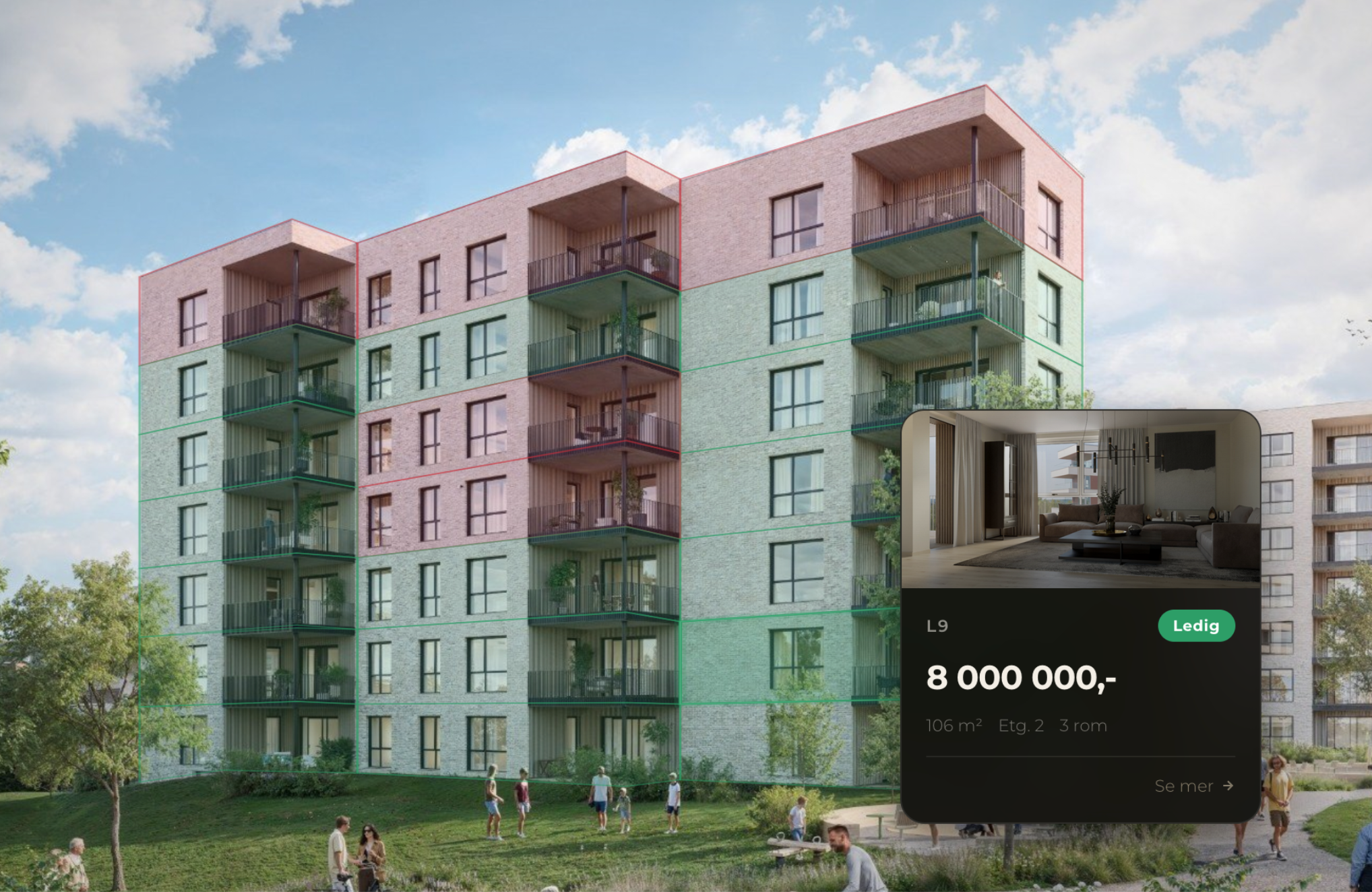 Klikkbare enheter, sanntidsstatus og all nødvendig informasjon samlet på ett sted. Kjøperne utforsker prosjektet på egenhånd uten at du løfter en finger.